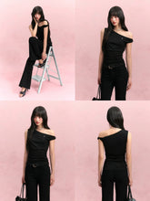 Black Asymmetric Shoulder Top