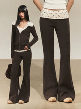 Designed with a contrast polka-dot waistband, these pants feature a low-rise cut that visually defines the waist while adding a playful vintage touch.