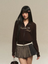 Crafted from a blended fabric with a soft yet structured hand feel, this sweatshirt offers warmth without heaviness. Vintage-inspired letter embroidery and star details at the chest add visual depth, complemented by a star-shaped zipper pull for a subtle statement. The cropped, tailored silhouette sits neatly at the waist, creating a flattering proportion while maintaining a relaxed fit. A stand collar and front zipper design make it easy to layer and suitable for everyday wear.
