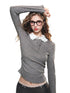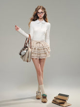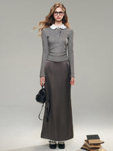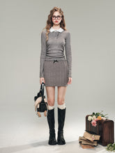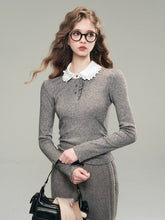 This knit shirt and dress set in elegant grey and soft white is a must-have for the winter season. The fabric feels as light and cozy as a gentle cloud, offering a perfect balance of warmth and comfort for autumn days. The high elasticity of the material enhances its fit, providing a snug yet cozy wear. Intricate hand-sewn beads adorn the collar, creating a glamorous and romantic look that shines in the afternoon sunlight.
