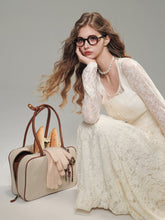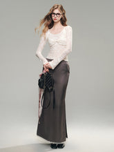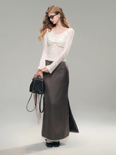 This lace knit top and long pleated skirt ensemble evoke the dreams of a princess. The textured lace pattern on the fabric provides a soft and comfortable feel, with a light and airy touch. The detailed lace bowknot design on the chest adds elegance and a romantic charm, perfect for dreamers.