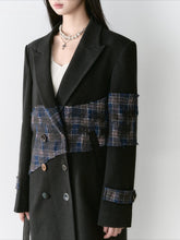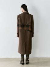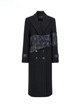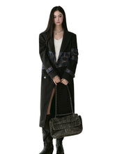 Name: Wool Blend Plaid Patchwork French Coat This long jacket features a classic textured fabric that offers a refined feel with detailed wheat grain patterns, enhancing its high-end quality. The fabric incorporates a blend of elastic nylon fibers for added stretch and comfort. The back panel is crafted with intricate hand-knit embroidery that adds a vintage touch with vibrant plaid accents, resulting in a unique and visually rich design.