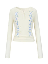 This long-sleeved T-shirt combines luxurious Tencel and wool for a soft, skin-friendly feel. The intricate argyle embroidery adds texture and visual appeal, making it a perfect layering piece for autumn and winter. Designed with a half-placket neckline, it breaks away from the mundane and adds a hint of individuality to everyday outfits.
