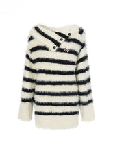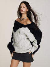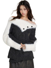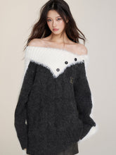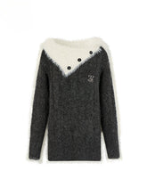 Wool Patchwork Asymmetrical Shoulder Pullover Sweater