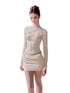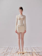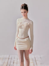 This elegant two-piece knit set blends soft brushed jersey with intricate lace detailing for a feminine, sculpted silhouette. The fitted long-sleeve top features delicate floral lace overlay that enhances the neckline and waist, while the matching skirt complements the shape with a balanced proportion. Crafted from 100% viscose, the fabric is breathable yet insulating—ideal for both layering and standalone wear through cool seasons. A refined piece that transitions seamlessly from daytime charm to evening elegance.